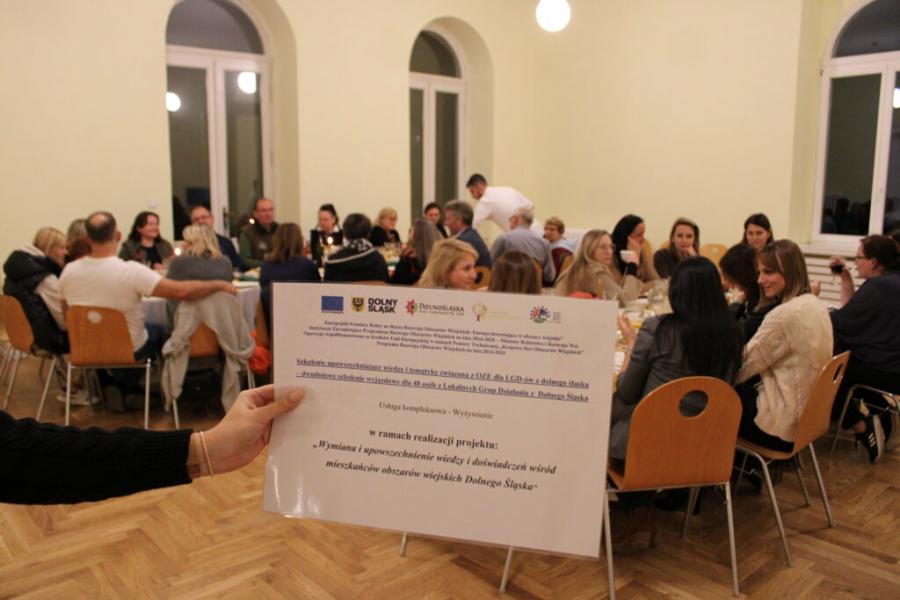 Dolnośląska Sieć Partnerstw LGD zorganizowała szkolenie pt. Szkolenie upowszechniające wiedzę i tematykę związaną z OZE dla LGD-ów z Dolnego Śląska – dwudniowe szkolenie wyjazdowe dla 48 osób z Lokalnych Grup Działania z Dolnego Śląska, PROW 2014-2020, realizowane w ramach projektu, finansowanego ze środków PROW 2014- 2020 w ramach KSOW, dla Lokalnych Grup Działania z terenu Dolnego Śląska.