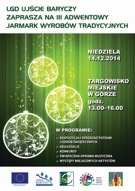 Dnia 26.11.2014r. 15 osobowa grupa miejscowych artystów i rękodzielników wzięła udział w warsztatach ceramicznych, w wyniku których powstała przepiękna biżuteria gliniana. Na kolejnym spotkaniu wypalona w piecu biżuteria będzie przez uczestników warsztatów szkliwiona i dekorowana. Swoje dzieła uczestnicy zaprezentują podczas III Adwentowego Jarmarku Wyrobów Tradycyjnych w Górze dnia 14 grudnia 2014r.