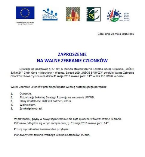 Zaproszenie na walne zebranie członków